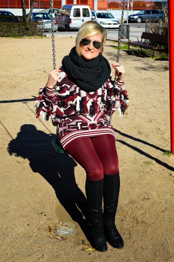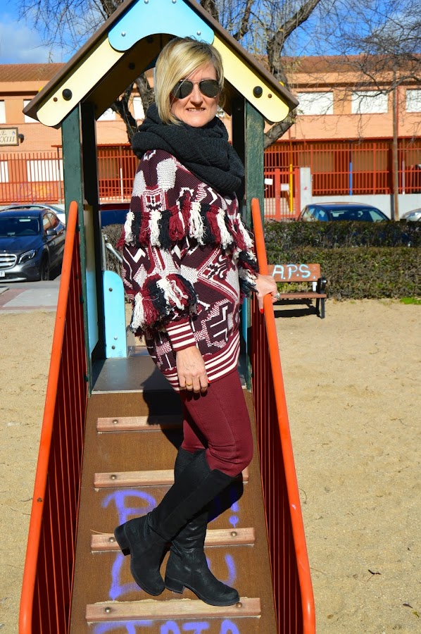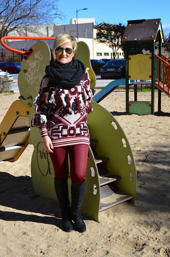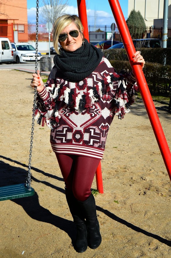 Un nuevo visitante ha llegado a mi armario. Este jersey de flecos de Zara, que aunque es de la nueva temporada abriga como una manta zamorana. Lo llevo con unos leggins de neopreno de la colección de Aversy (mi trabajo) Desde luego le tendré que dar uso ahora porque en cuanto salga un poco el sol no creo que lo aguante.... Me gusta mucho el estampado que tiene, su colorido y la manga japonesa.