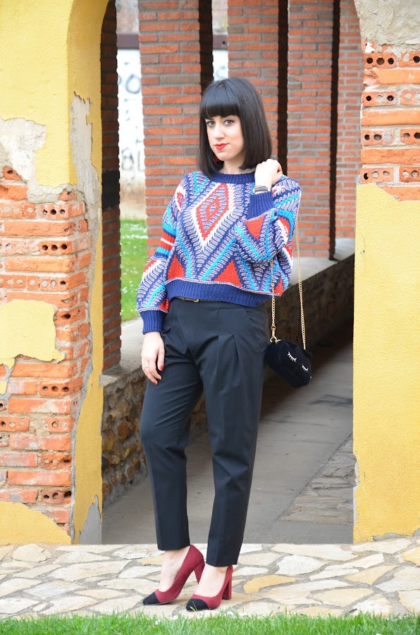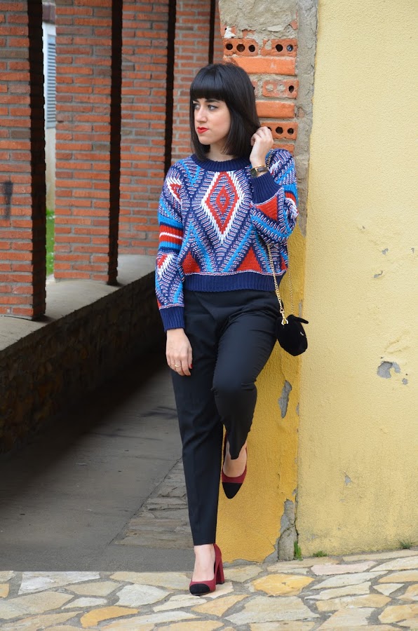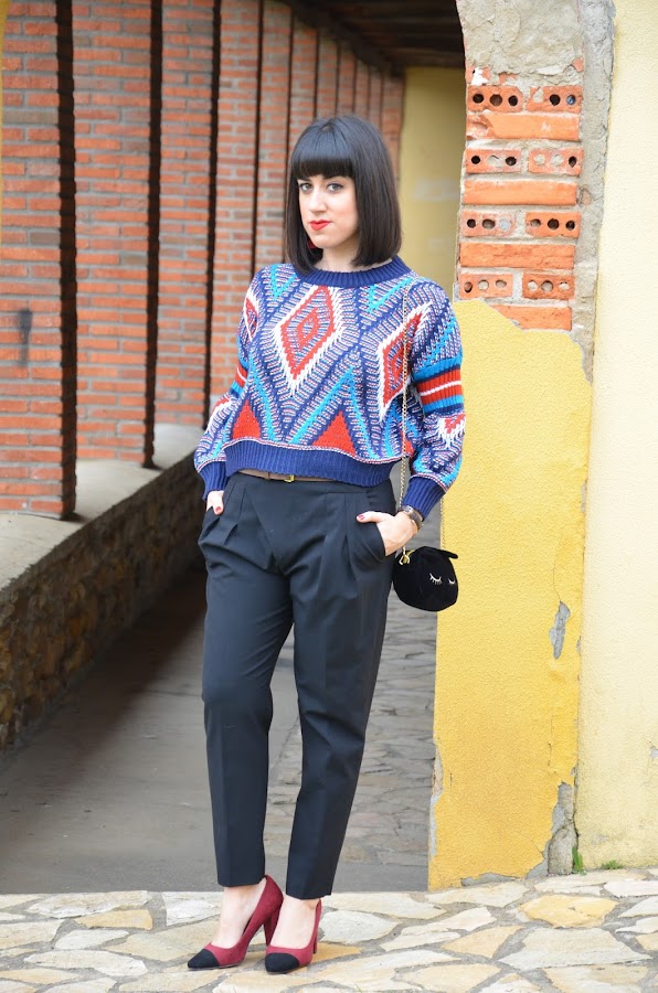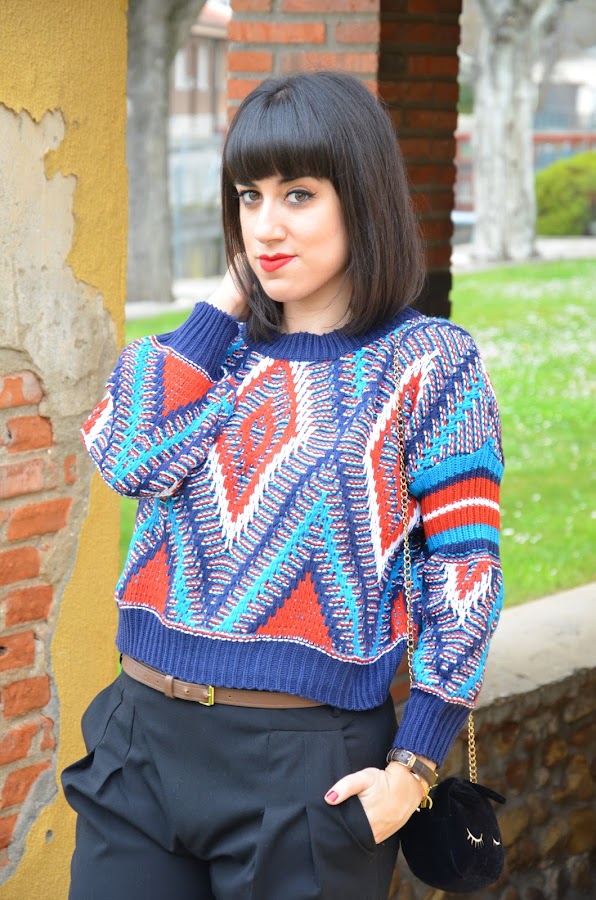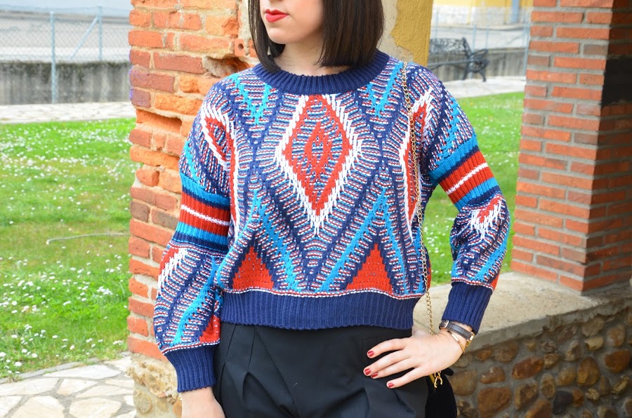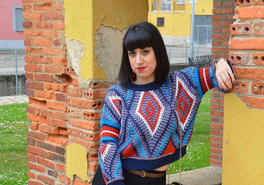 Es de Shein. Es super calentito y es crop, bien para enseñar barriguita o para llevar con pantalones y faldas altas. Tiene una combinación de colores preciosa y el detalle que mas llama la atención son las mangas.