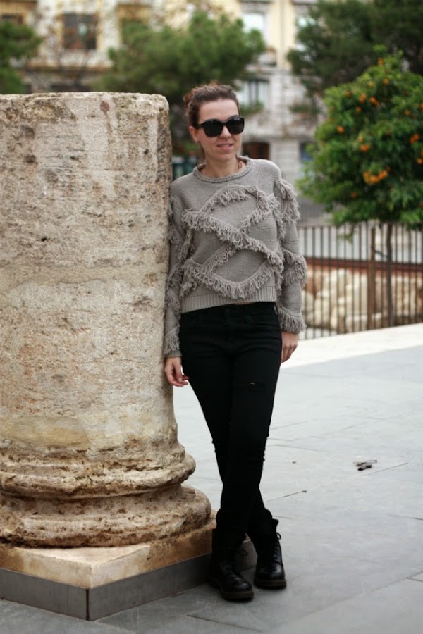 Aunque desde que vi el jersey pega un estilismo complemente boho, me apetecía jugar con las prendas, mezclarlas y probar el resultado con unas botas tipo militar como las Dc Martens, el resultado me encanta por el rollo festivalero que tiene, así que voy a tener que buscar algún concierto por lo menos. (cualquier excusa es buena)