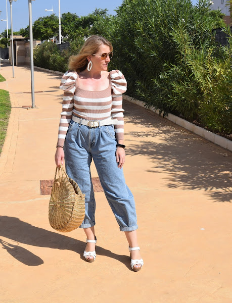El caso es seguir activa, y poder mostraros este look con este jersey de magas abullonadas tan bonito.