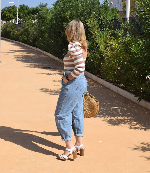 Luego están los complementos que quieras añadir, yo opté por sandalias porque hasta este fin de semana el tiempo ha sido espectacular por Almería, y aproveché para llevar mi bolso capazo y pendientes también en blanco.
