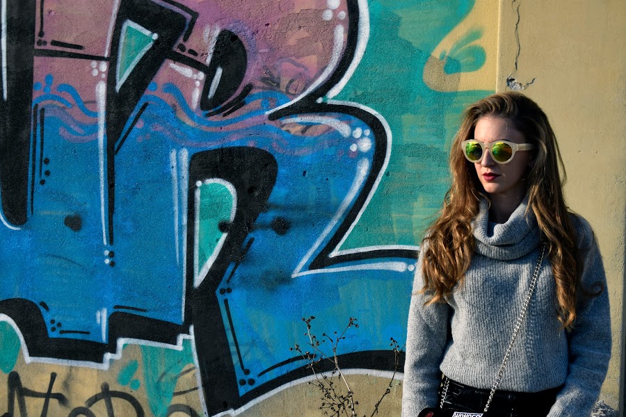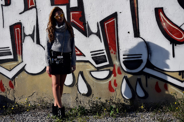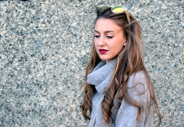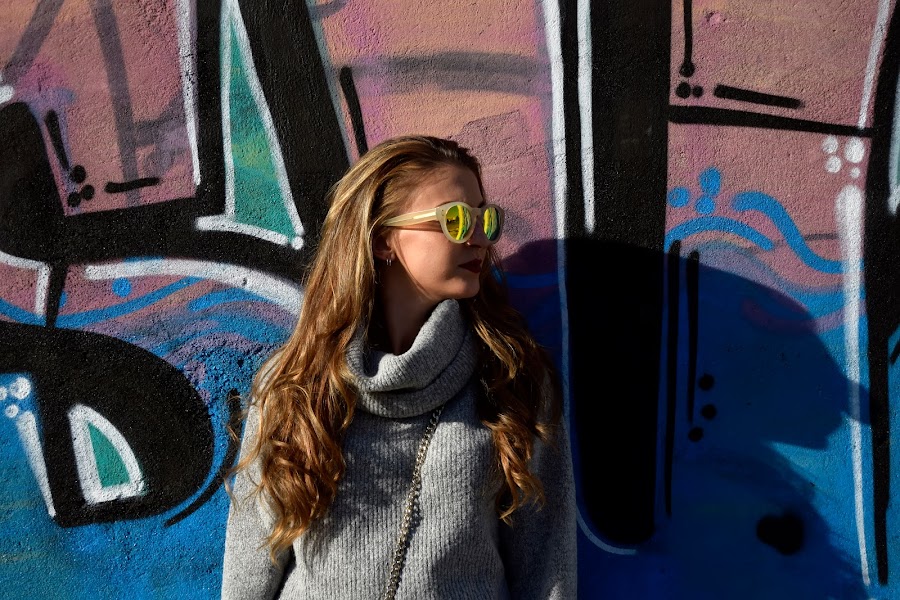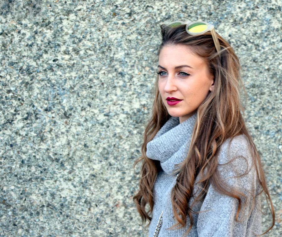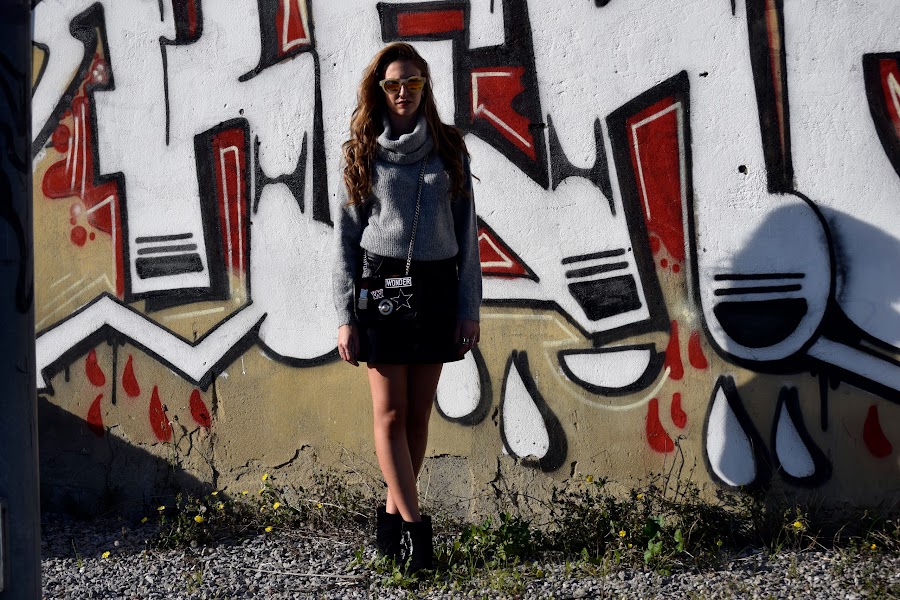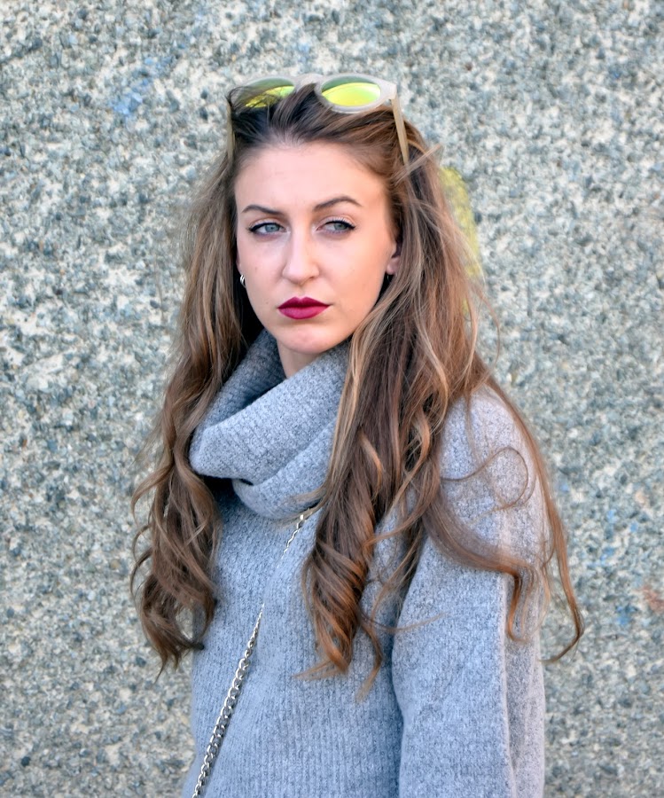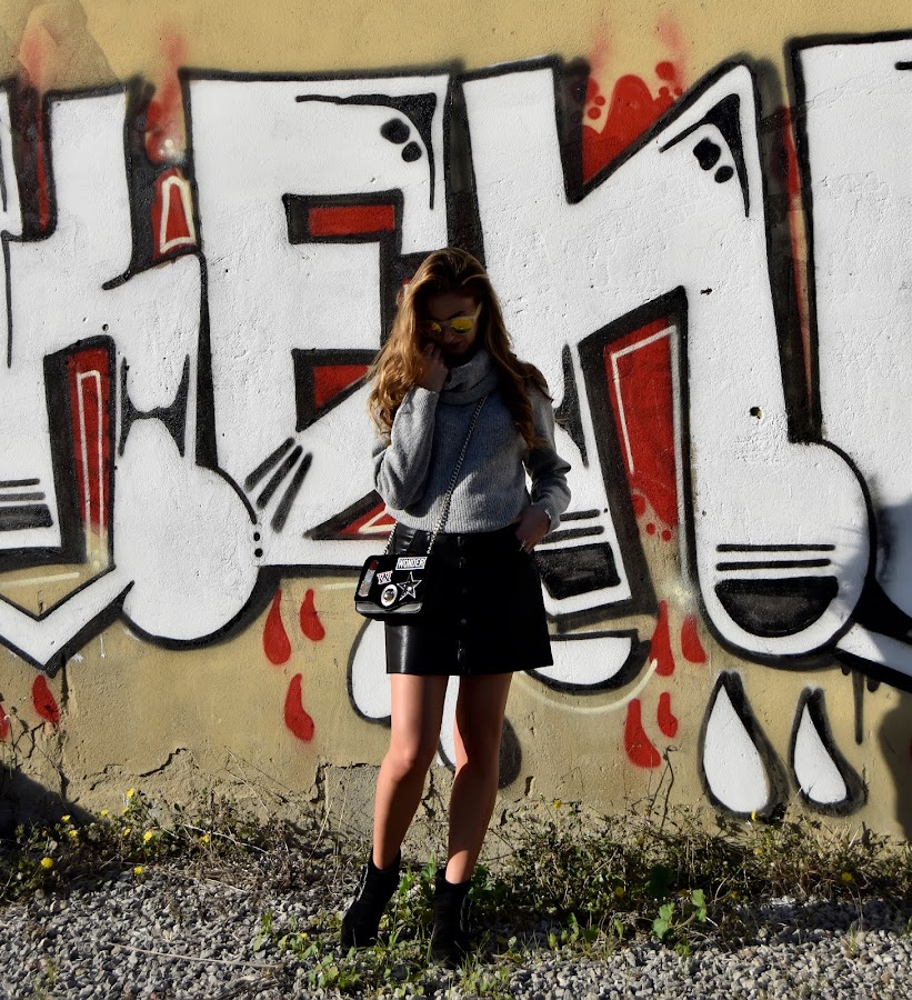 Para ello combiné un jersey gris super amoroso de Mango, con la falda de cuero que ya os enseñe en un anterior post y que me encanta y para darle un toque de color estas gafas de pasta y cristal amarillo de Uterqüe