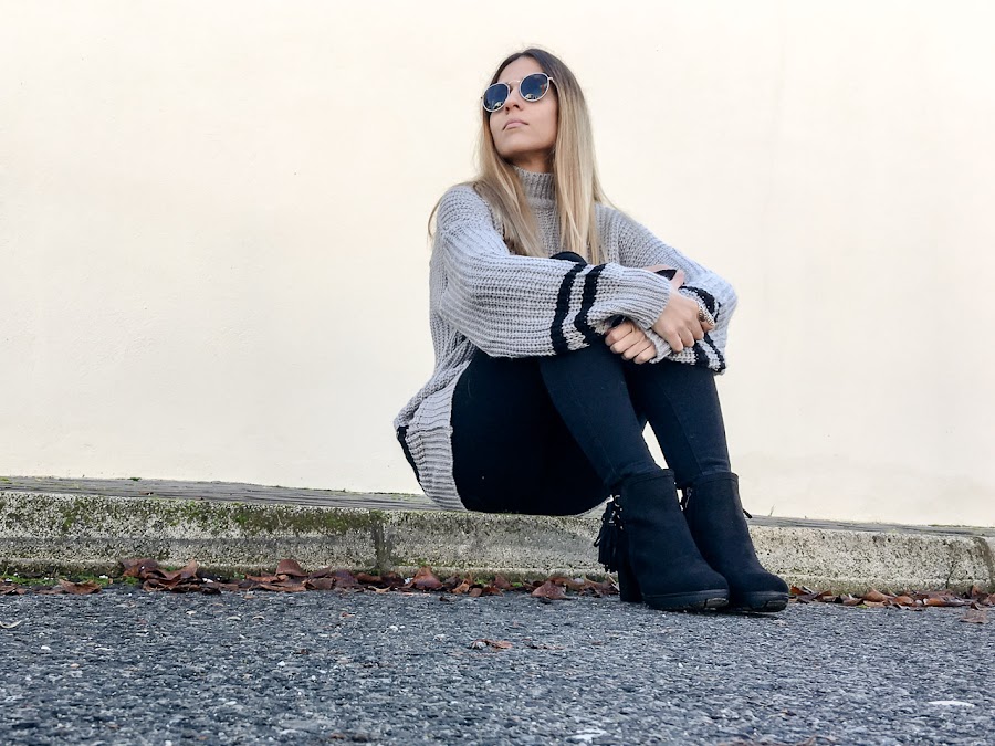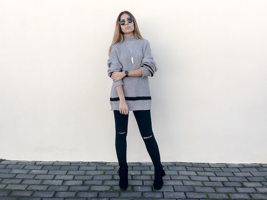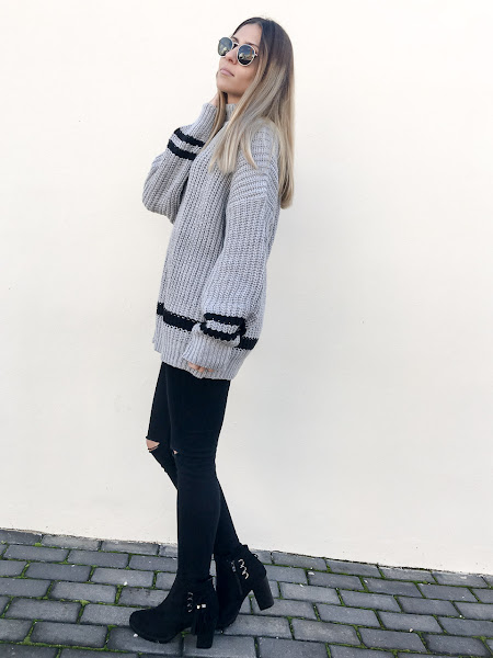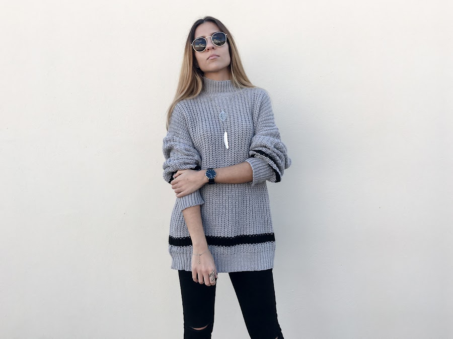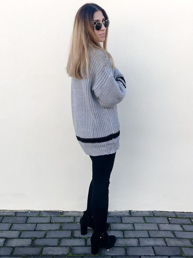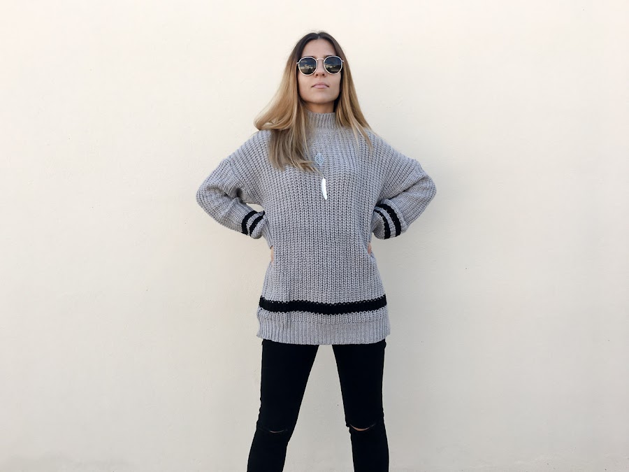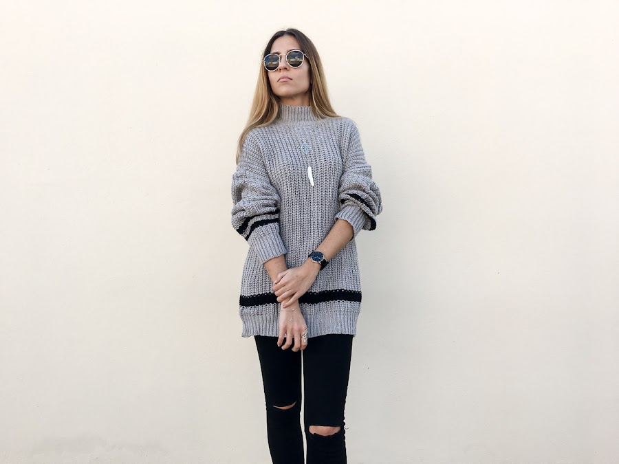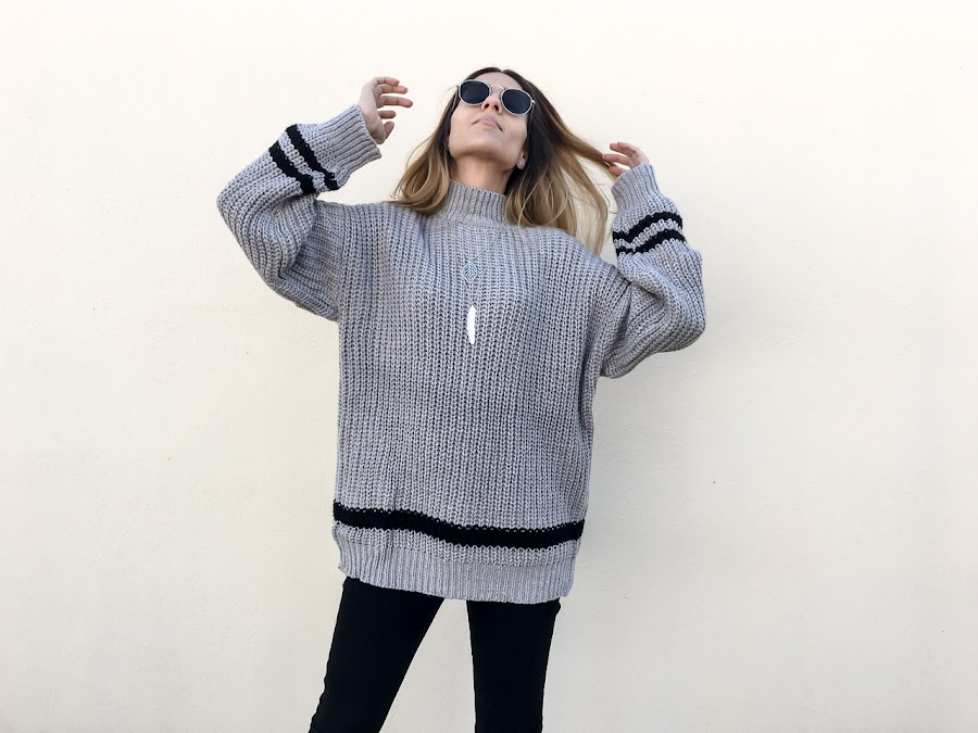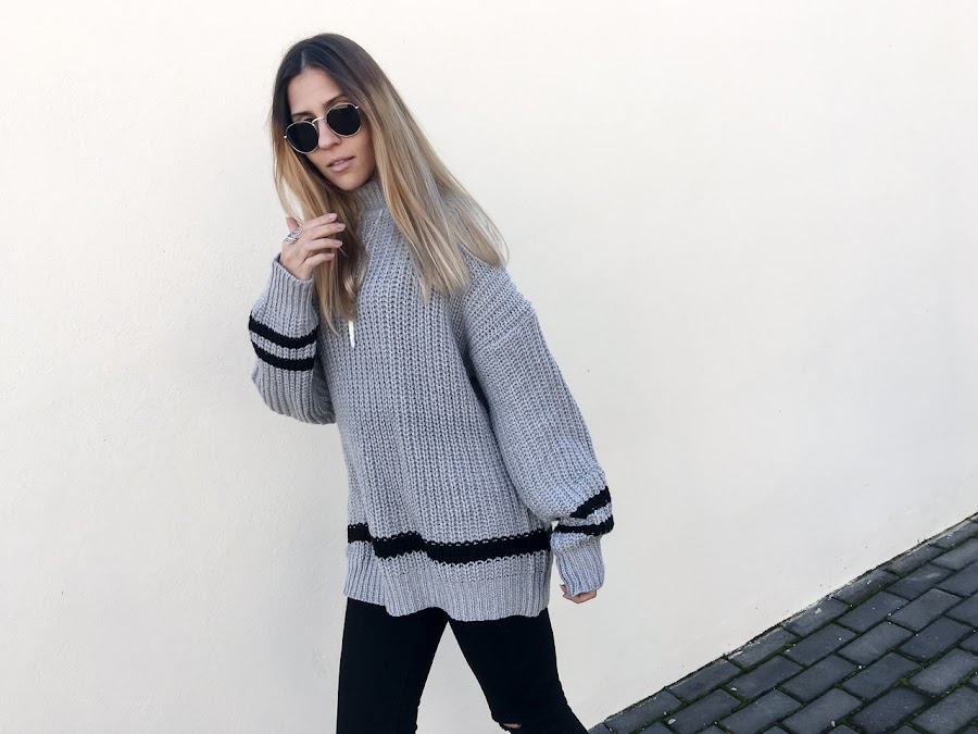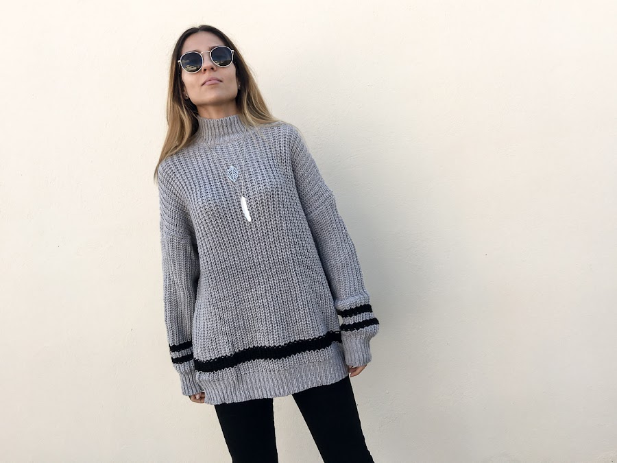 Yo elegí un maxi jersey gris con rayas negras en las mangas y en el bajo, de lana, súper gordito y calentito, es perfecto para el invierno!!