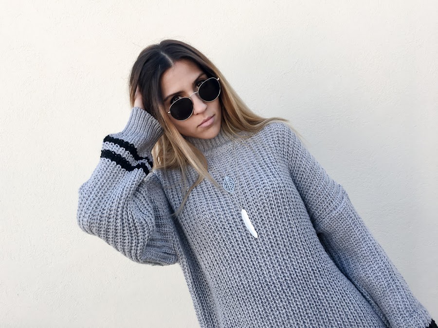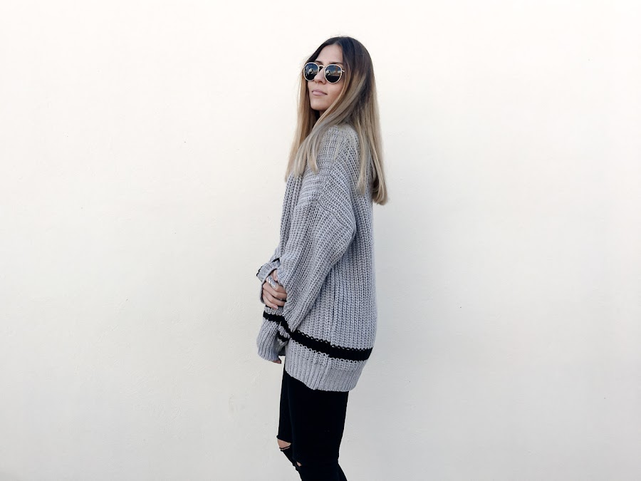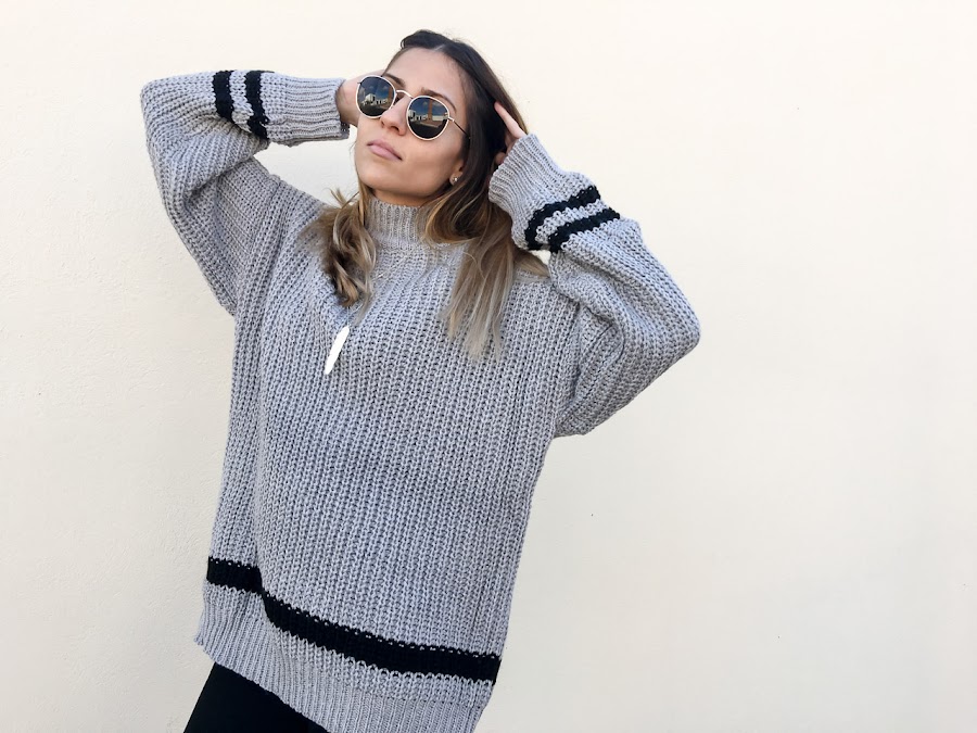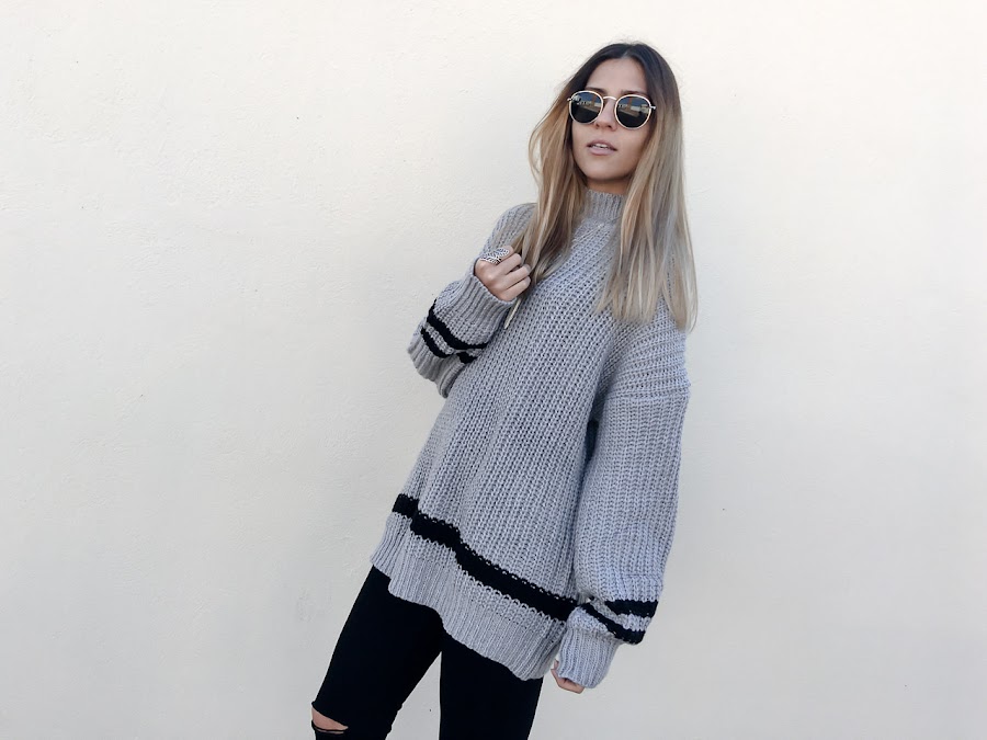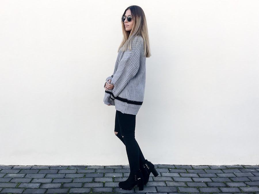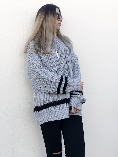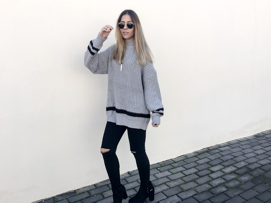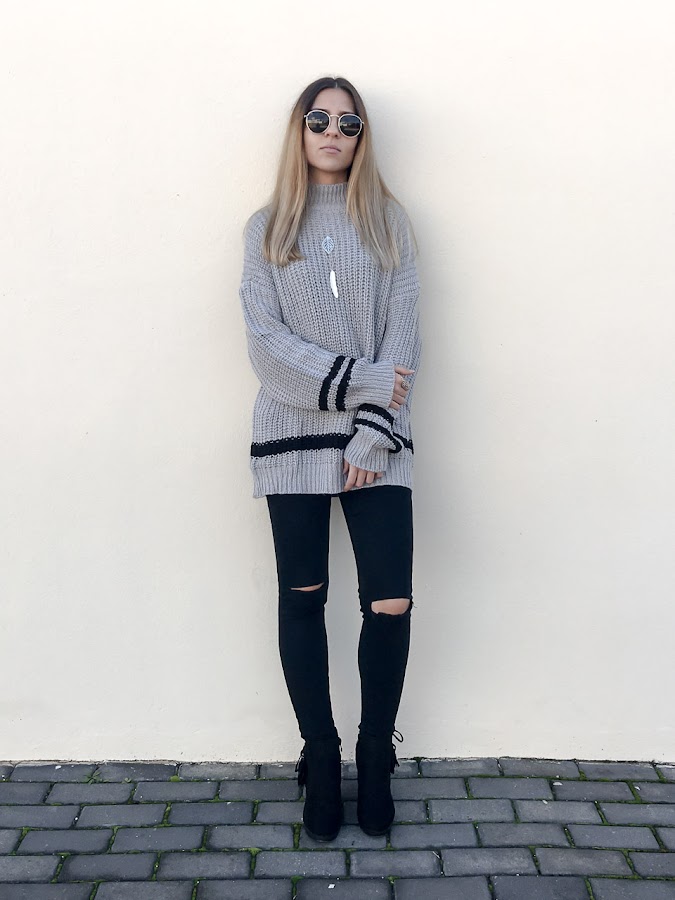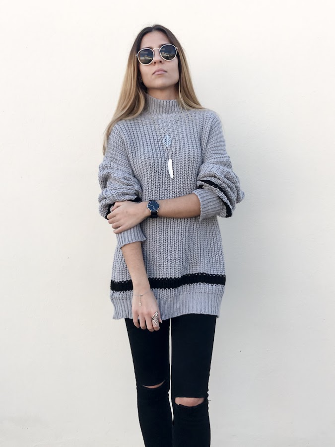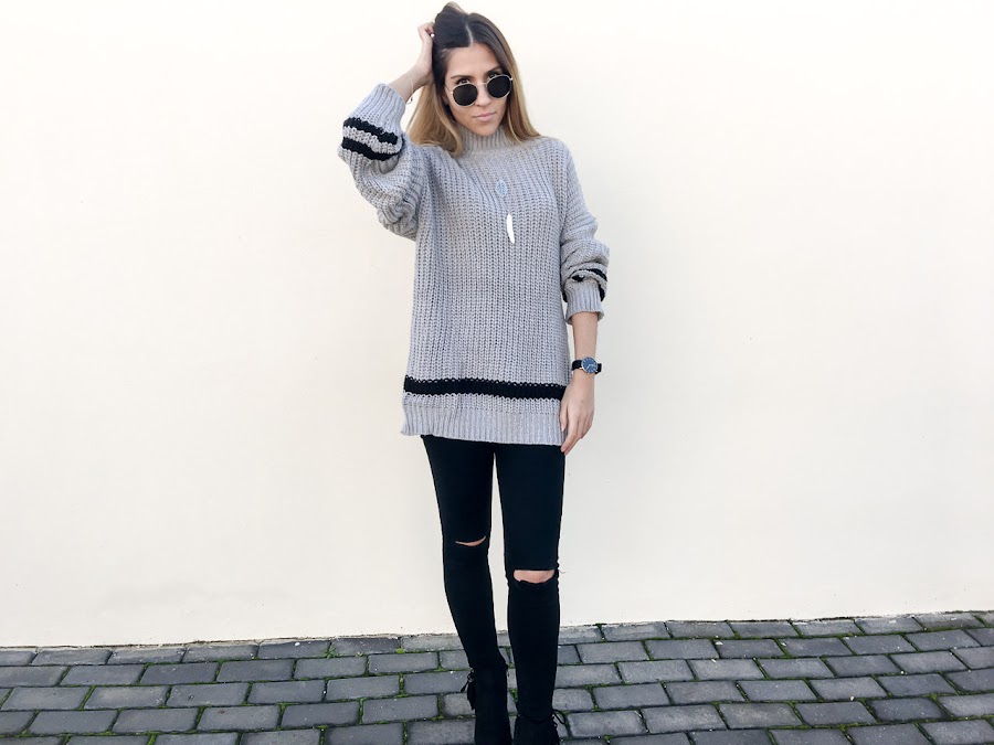 Yo elegí un maxi jersey gris con rayas negras en las mangas y en el bajo, de lana, súper gordito y calentito, es perfecto para el invierno!!