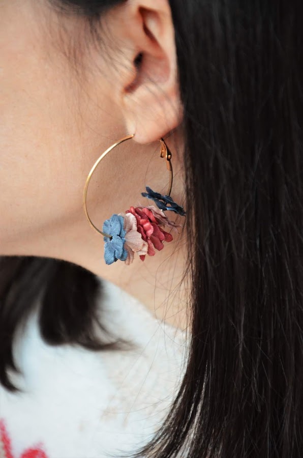 También de Rosegal son los pendientes, que me recordaron mucho a unos que tuve hace un montón de años y que me encantaban. Son aros simples con flores de tela, y es que tienen una combinación de colores ideal.