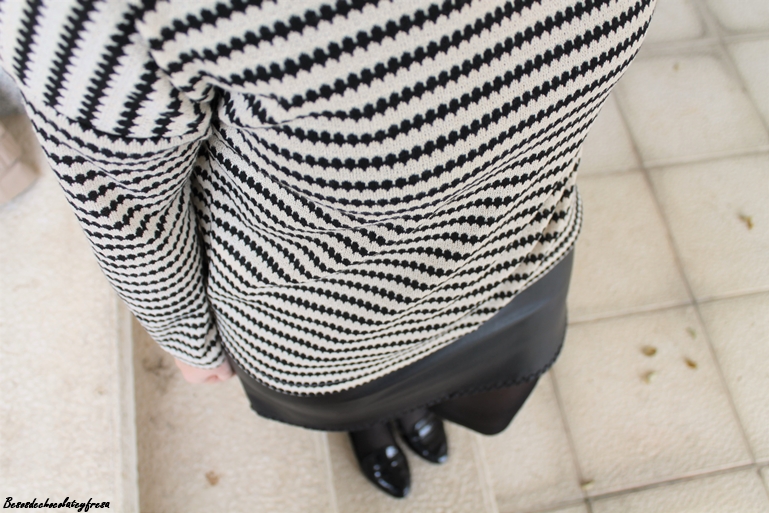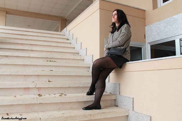 Hoy os traigo un nuevo look, esta vez con sweater perkins de Besosdechocolateyfresashop, super calentito y amoroso con las rayas características en crema y negro y cuello chimenea.