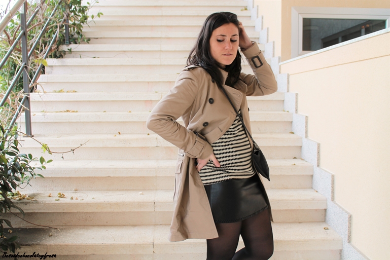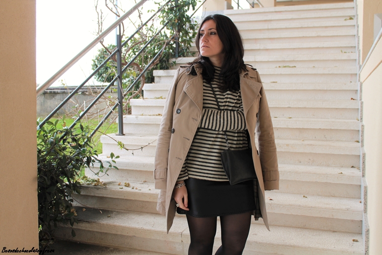 This time I decided to combine it with a black polipiel dress because I like to give new airs to the garments and the overlay of sweater on dresses is very well and you could already see it also in this post. Complete the look with black patent leather slippers, shoulder bag and nude trench. What do you think?