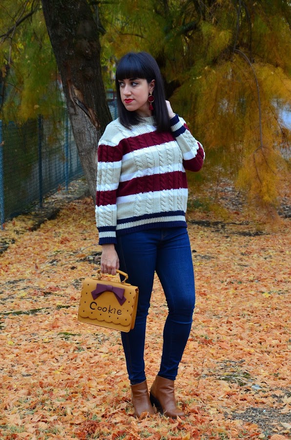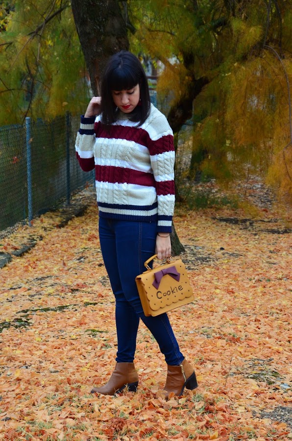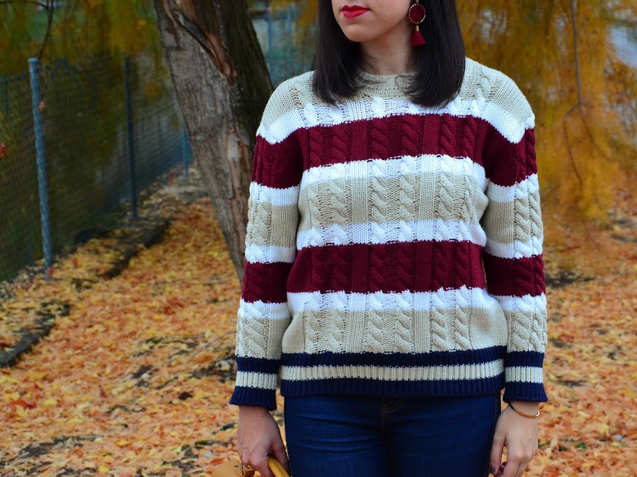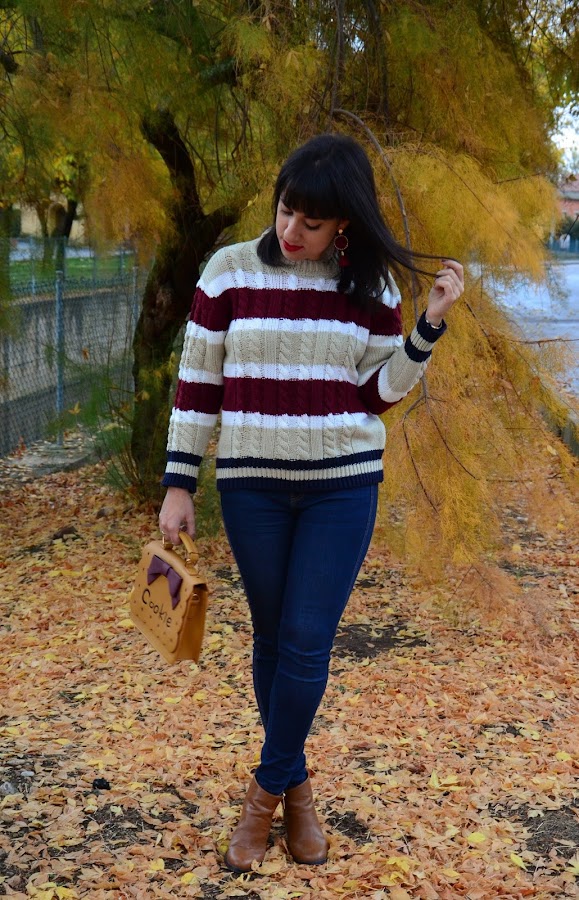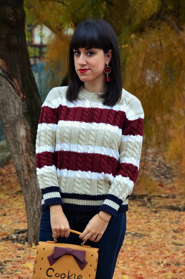 El que hoy os enseño es de Zaful, de rayas, en tonos muy otoñales. Es tan calentín que da gusto llevarlo y la combinación de colores la encuentro muy favorecedora. Es talla única.