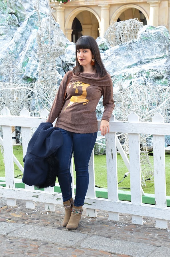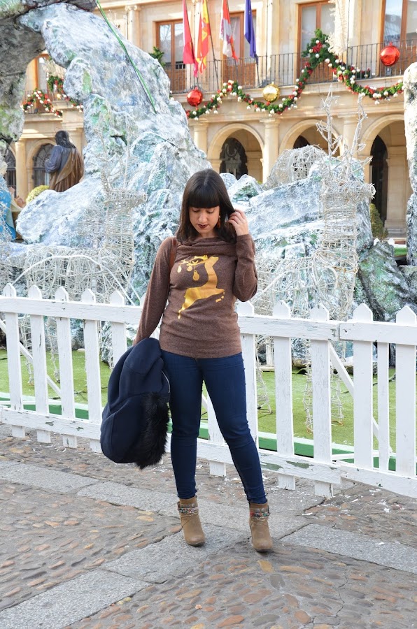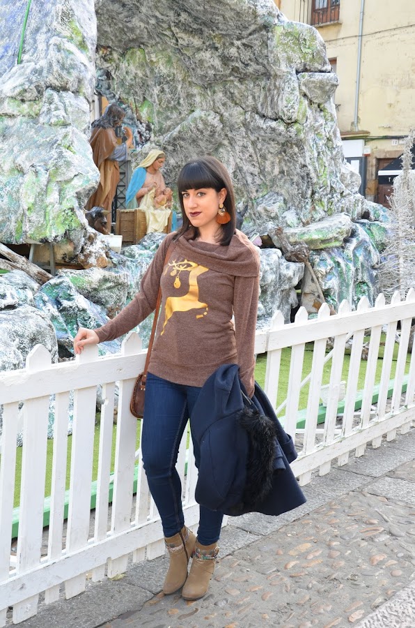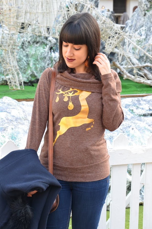 Hoy os enseño este jersey marrón, con un reno estampado y cuello vuelto de medio lado. Es de Dresslily y lo tienen disponible en 5 colores. Os enseño el marrón que fue mi favorito de todos.
