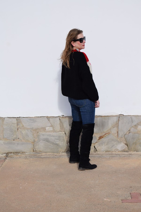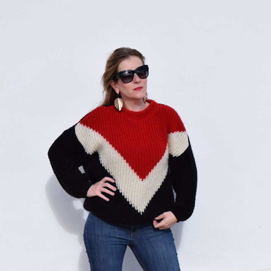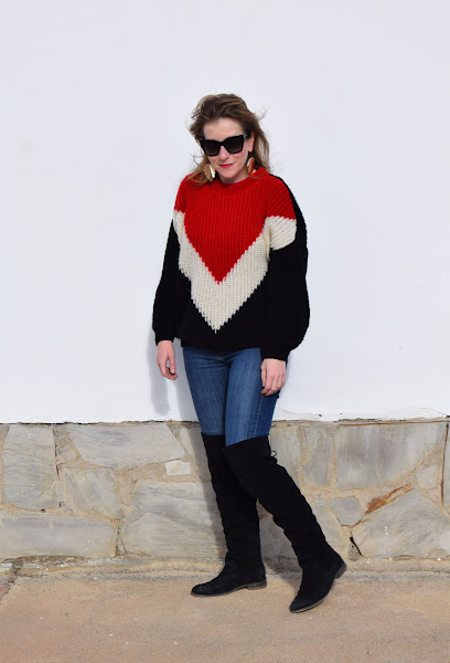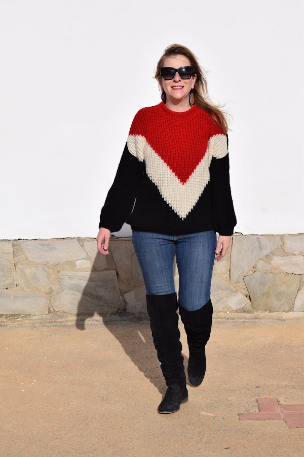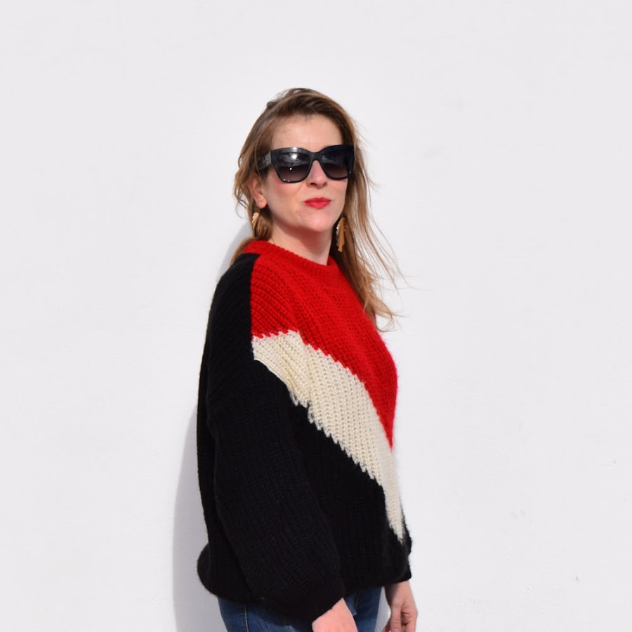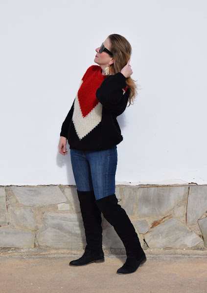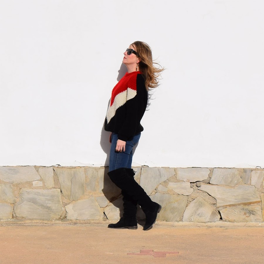 Rojo, blanco y negro, quizá mis colores favoritos de siempre, unidos en forma de jersey, que combina tanto con vaqueros como con minifalda.