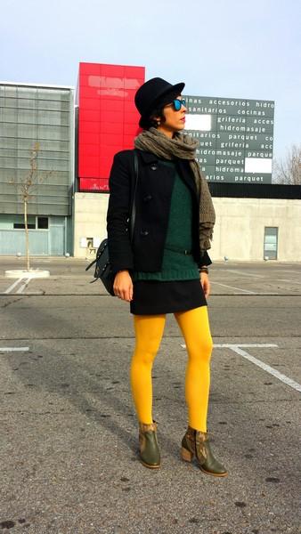 Como tampoco es que me guste ir de colores sobrios elegí romper con las medias color mostaza de Lefties. Horterillas y llamativas le dan un punto interesante al conjunto. Bastante tupidas, gorditas y calentitas.