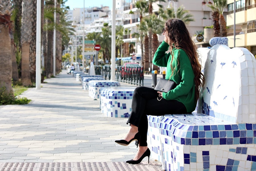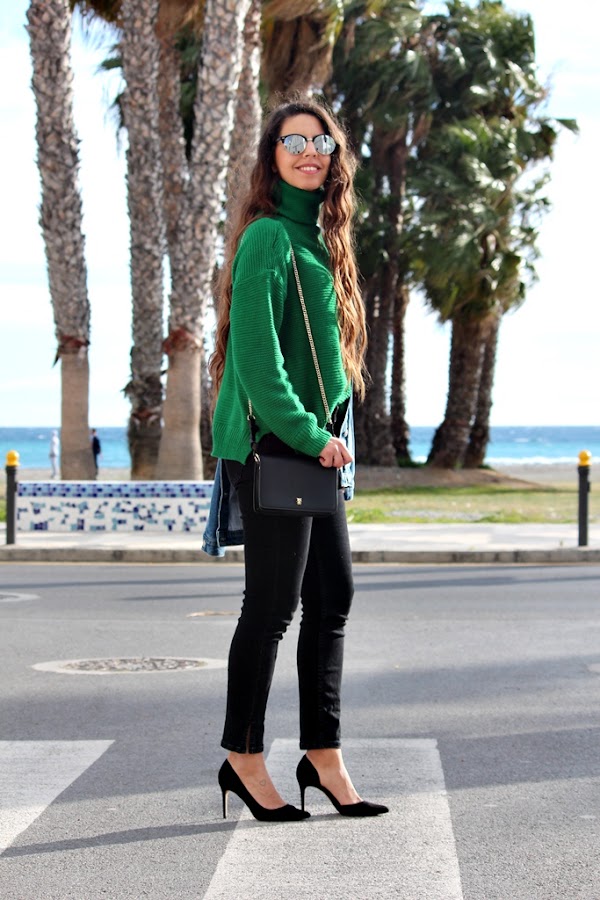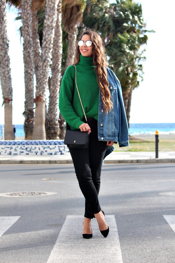 Comenzamos una nueva semana con café en mano y mucha energía. Aunque estemos en primavera todavía hay días para seguir utilizando nuestro jersey favorito. En mi caso tengo varios y este que os enseño, es uno de ellos. El color verde intenso y que es tipo oversize me flipa, es de punto y de cuello alto. Poniéndome una camiseta finita de bajo es suficiente para no pasar frío y la verdad es que se puede combinar de mil formas. Lo pedí en Gamiss y tienen cosas chulísimas, ya estoy preparando la lista para esta temporada en su página :). Como veis el jersey lo combiné con jeans en tono negro y tacones de Mango. Chaqueta vaquera de Okeysi y bolso de Zara. Un look muy básico pero dándole un toque sofisticado con unos buenos tacones Os deseo una buena semana. #FelizLunes.