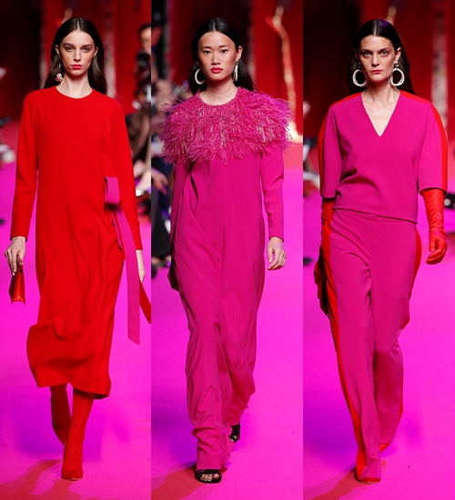 El binomio rojo-fucsia, visto en otras temporadas de Valentino y Balenciaga, se perfila casi casi como el nuevo blanco y negro, y por supuesto, Vázquez nos propone sus piezas.