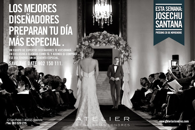 El próximo jueves tendré el placer de disfrutar en directo de la colección de vestidos de novia de Josechu Santana en el Atelier de Galerías Londres, una venta privada con asesoramiento personalizado de los diseñadores y descuentos especiales.