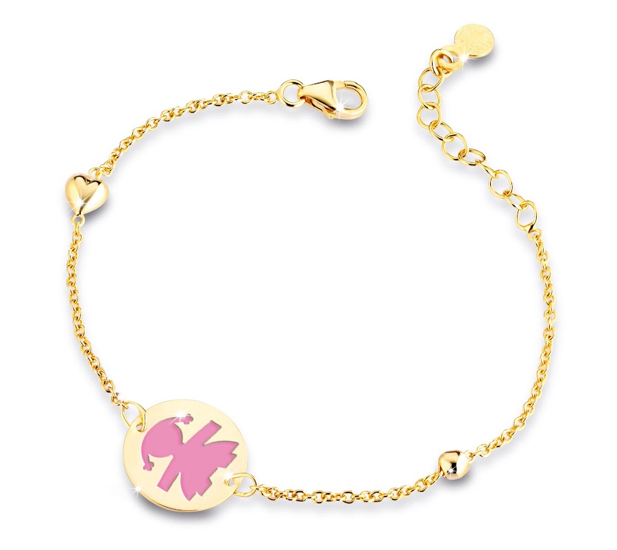 Compuesta por colgantes, pendientes, anillos y pulseras en oro amarillo de 18 kt, rosa o plata con o sin diamantes. Todas las piezas de la colección se pueden personalizar grabando el nombre del bebé en la joya.