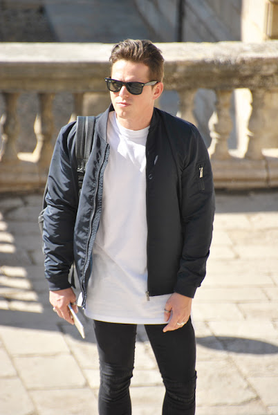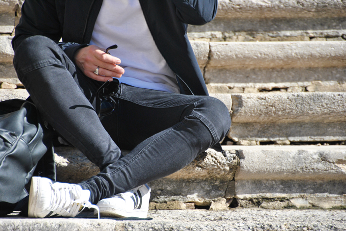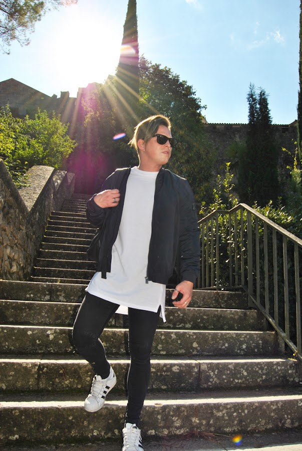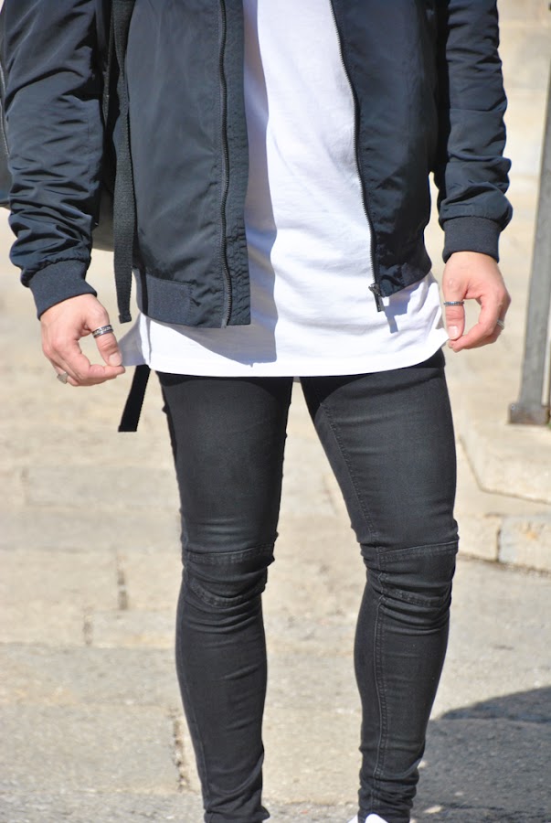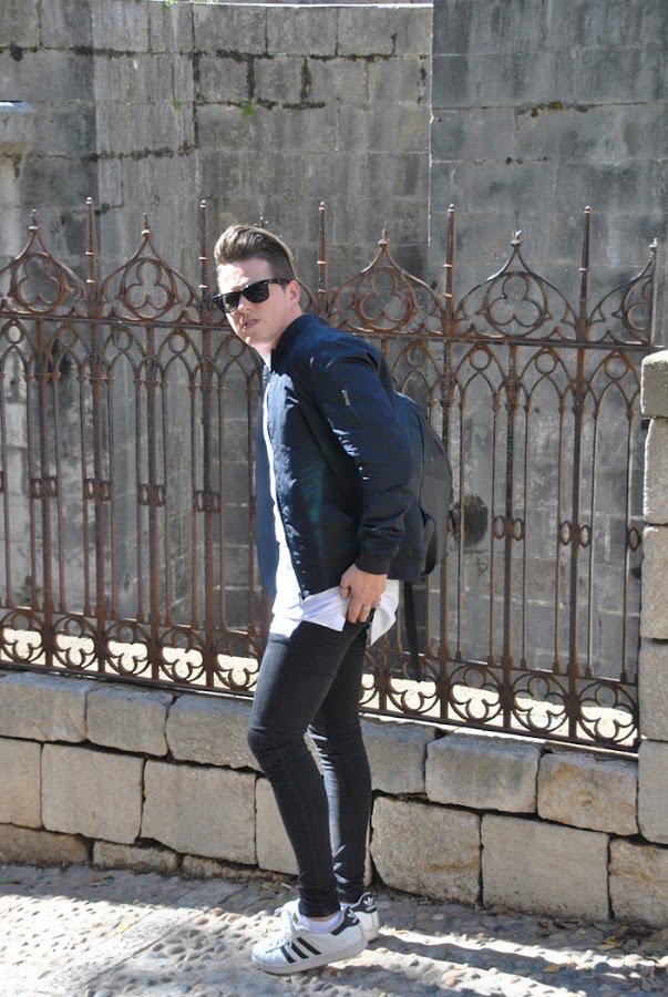 Anda! casi me olvido del look... Elegí unos super skinny jeans elásticos muy cómodos, camiseta XXL, mis Superstar y la bomber que me regaló mi hermano de Zara. Para cargar todos los trastos llevaba una mochila negra efecto piel que me regalaron mis amigos para mi cumpleaños. Espero que os gusten las fotos y el look! Besos