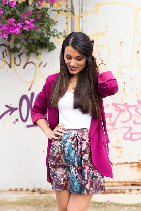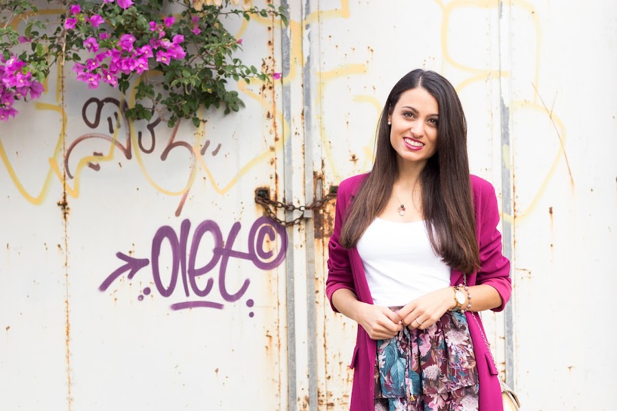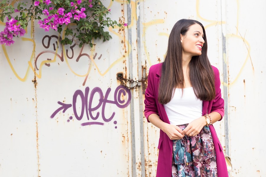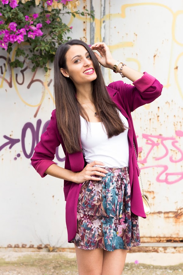 Hoy os dejo un colorido conjuntito con mi nueva blazer burdeos de CAYRO WOMAN