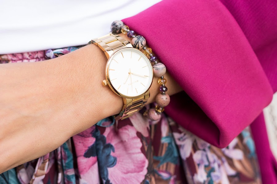 En el look de hoy también os presento mis nuevos complementos BILYFER, ya que también estreno un maravilloso colgante en oro y tonos rosas; y un ideal reloj dorado de esta marca mallorquina que me ha conquistado. Además de sus fantásticos diseños, tienen una estupenda calidad y unos precios muy asequibles por lo que los recomiendo 100%. No os podéis perder sus colecciones tanto para mujer como para hombre!!