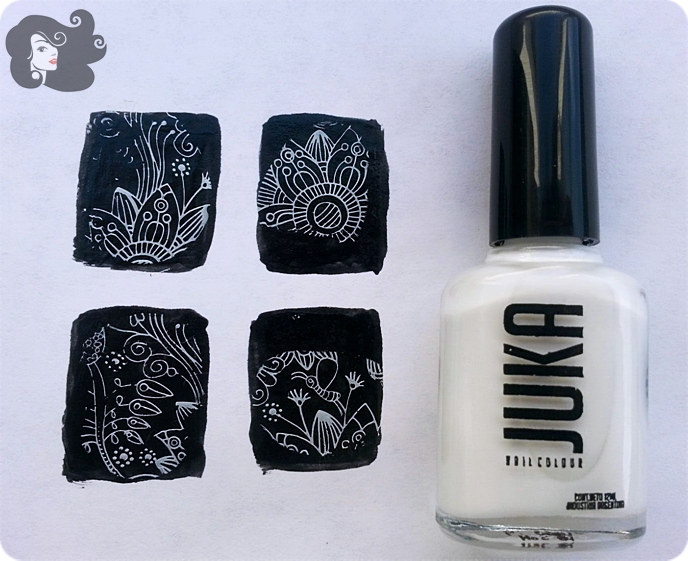 Hace poco tiempo Juka sacó dos esmaltes para stamping, uno blanco y uno negro, yo tengo el blanco que me fue regalado por una amiga para que lo pruebe y debo decirles que después de probarlo encargué el negro porque me gustó y mucho!