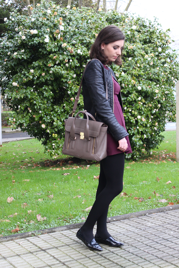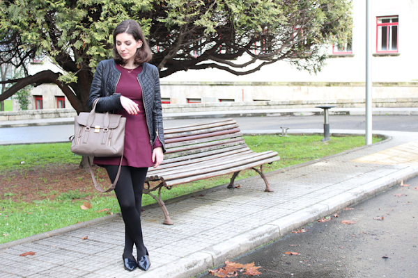 Ya sabéis de mi gusto por el granate y el negro y si son juntos pues mejor, así que aprovechando unos días de no tanto frío y sol volví a sacar este mono y los zapatos que hacia tiempo no me los ponía.