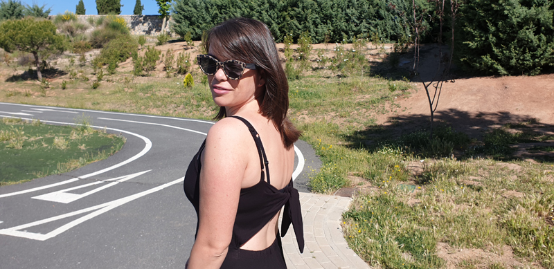 Este año se llevan a tope los monos, sobre todo, por lo que he visto en las tiendas, los monos de pantalón largo y de arriba manga corta o tirantes y aunque yo no es que sea súper fan de los monos pero hubo dos que me encantaron, así que se vinieron conmigo y uno es este, muy básico, sencillo por delante y con detalle en la espalda.