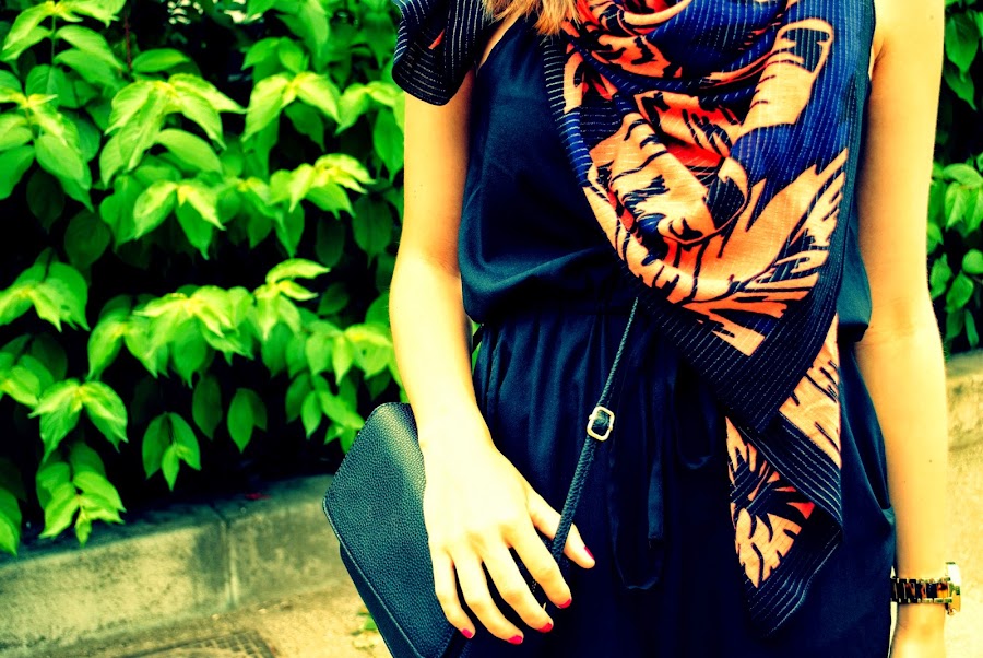 As in yesterday Pao"s post, the jumpsuit is the protagonist of my today"s look. These clothes are very comfy and we love it for summer. In this case, this jumpsuit is perfect for evening events, so I decided combine it with sandals and a colorful scarf, I hope you like it!