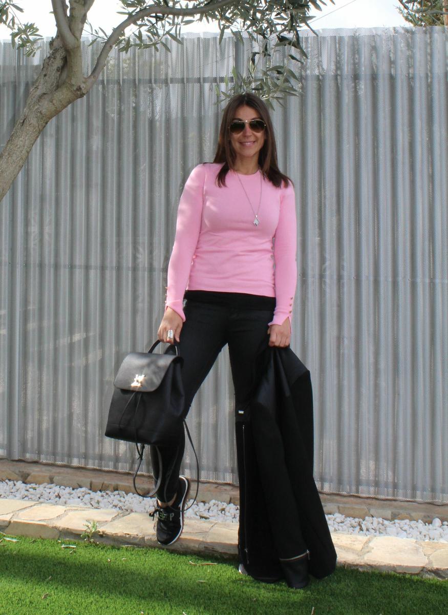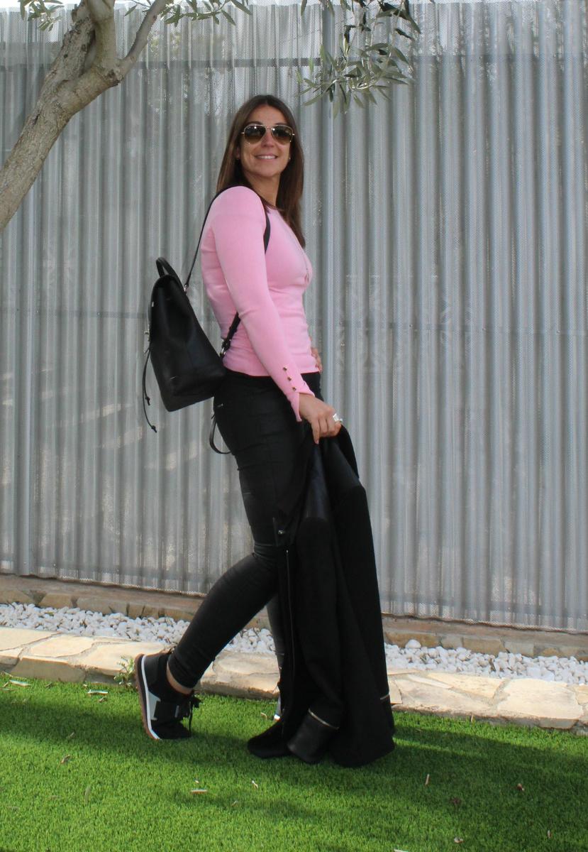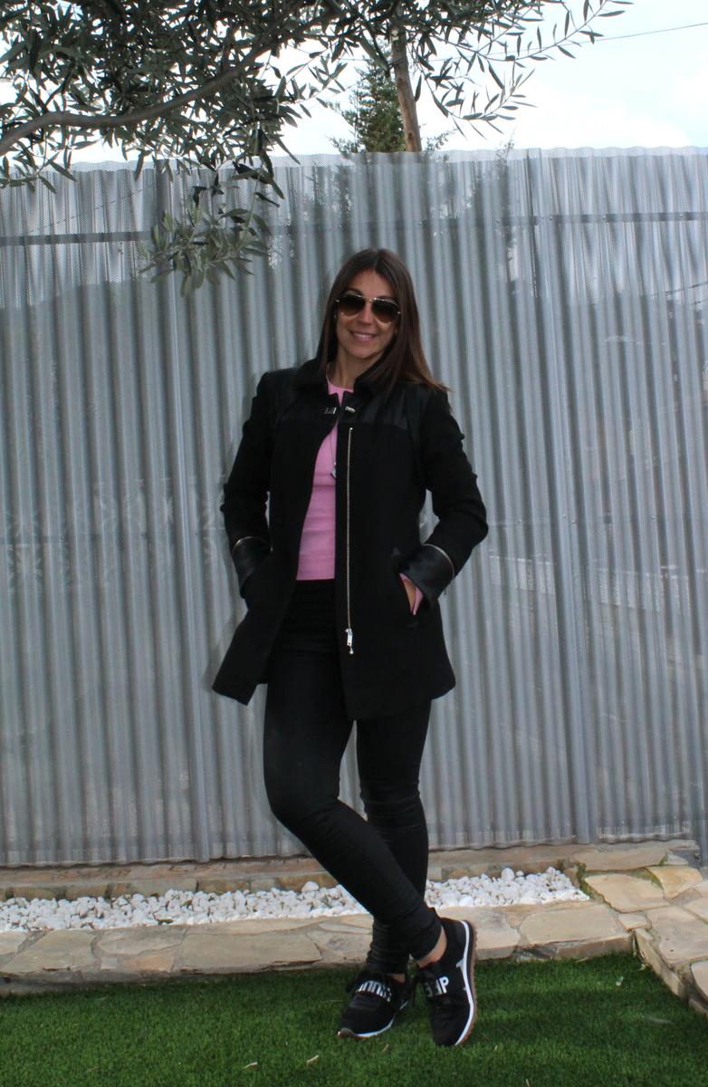 La combinación de hoy muy sencilla, pantalones pitillo, jersey , zapatillas deportivas y un abrigo fino para primeras horas de la mañana.