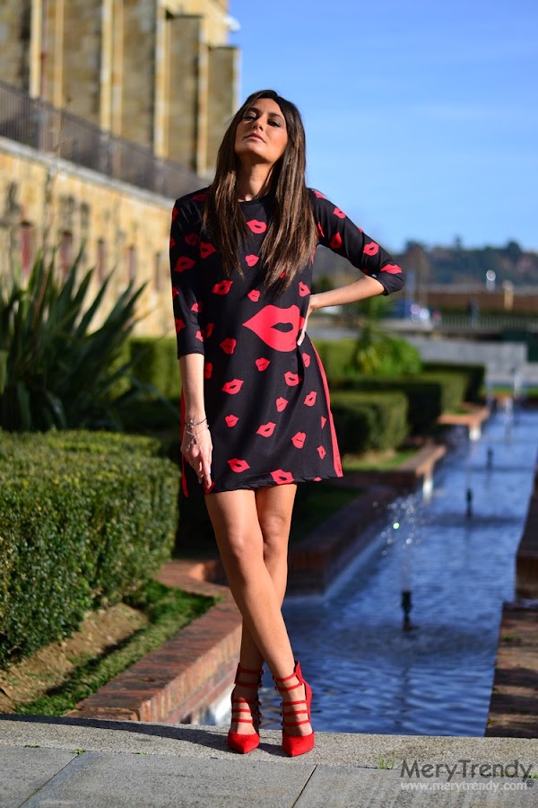 Os confieso que llevaba ya varias semanas encaprichada de este vestidito lleno de labios y, por fin, desde este fin de semana, ya puedo gritar a los cuatro vientos que lo tengo en mi poder... Jijiji.