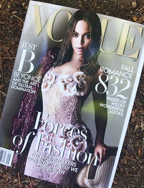 Segun Homorazzi es la tercera vez que Beyonce aparece en la portada de Vogue.Las otras ocaciones fueron en Abril 2009 y en Marzo 2013.