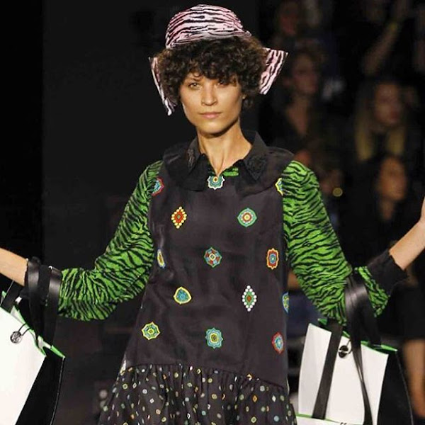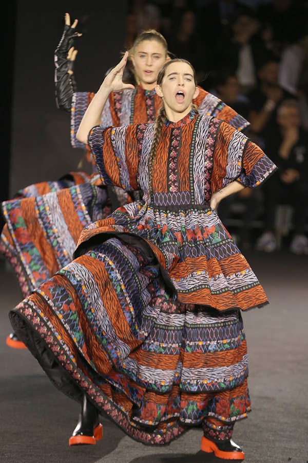 Cuando vi la colección por primera vez, la verdad es que no me gusto nada de nada, pero en el desfile se veía preciosa esa expresión de color y fue un acierto el hacer un desfile tan poco convencional que le dio movimiento a las prendas tan recargadas y mas que en un desfile, parecía el circo del sol con bailarines modelos, músicos...