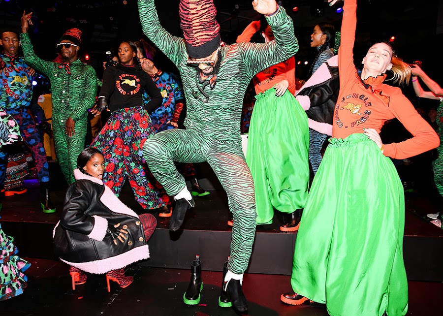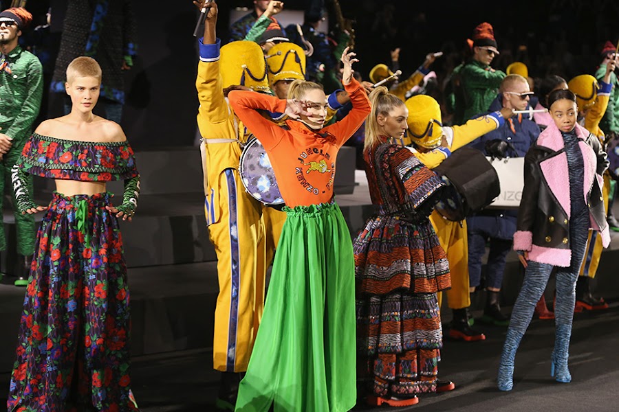 Al ritmo de un remix personalizado de "Express Yourself" por Sam Spiegel, bailarines, modelos y músicos se reunieron para celebrar la belleza y el poder de la expresión individual. A través de una coreografía única creada por el colaborador de KENZO , Ryan Heffington organizador del espectáculo que presentó la colección H xM & KENZO a un público que que no quedó indiferente ante la ropa de llamativos colores. Carol Lim y Humberto Leon, directores creativos de Kenzo, querían una puesta en escena espectacular en la que sus creaciones brillaran y los invitados disfrutaran. ¡y creo que lo han conseguido!