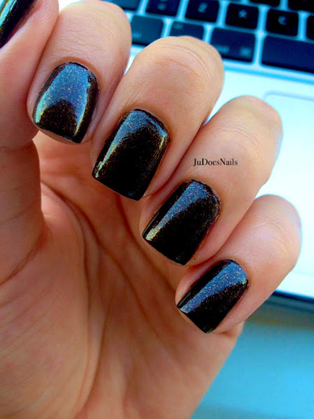 Hoy vengo con uno de los esmaltes nuevos que han sacado en Kiko en su lineal fijo. Se trata de un color negro con micro destellitos de color marrón y dorado.