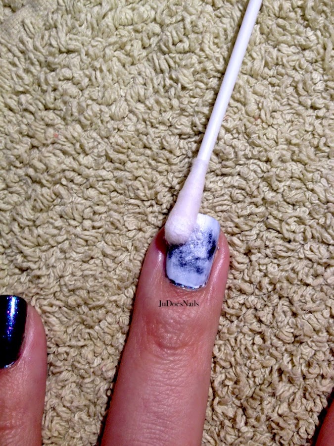 A continuación con un bastoncito de algodón mojado con acetona se pasa por encima de la uña: