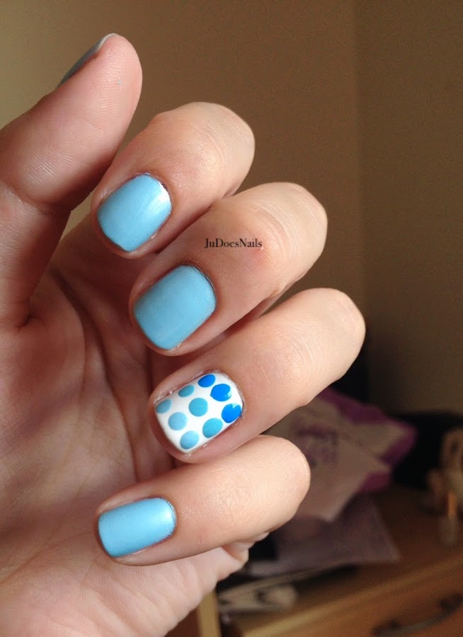 Último esmalte que me quedaba por enseñaros de Kiko! Se trata de un azul bastante claro de acabado perlado que hace que las uñas brillen más y dependiendo de la luz natural incluso parece que sea neón! En la siguiente foto llevo dos capas de esmalte: