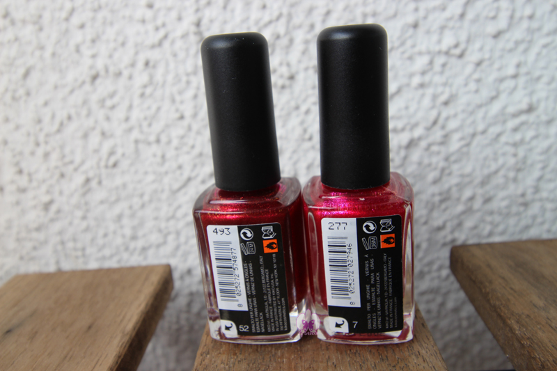 El primero que veis a la izquierda, el granate, es el nº493 y el de la derecha, el rosa el nº277.
