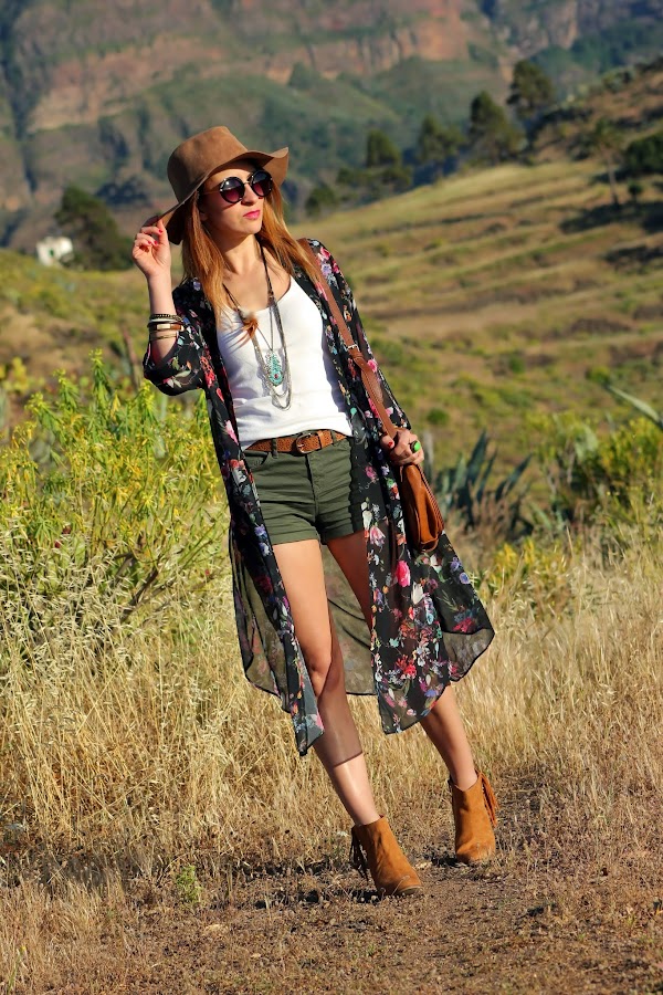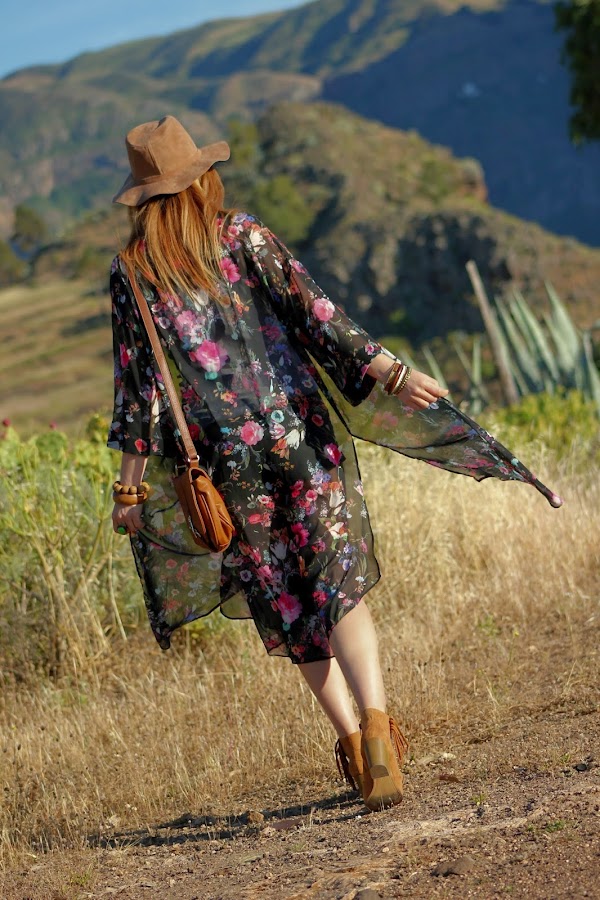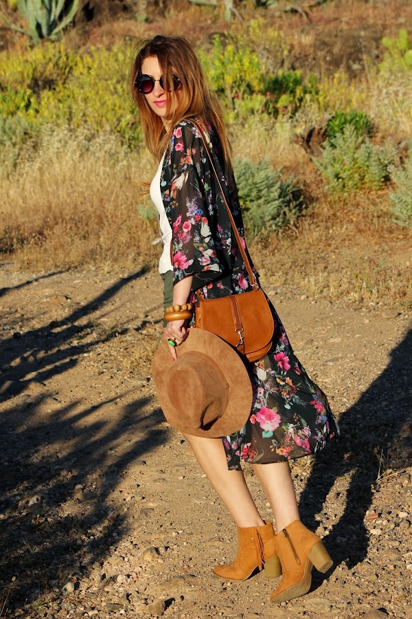 Mi predilección por el estilo boho chic ha sido el motivo de inspiración para crear el look de hoy con este precioso kimono floreado de Bershka.