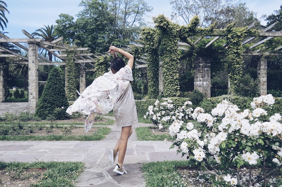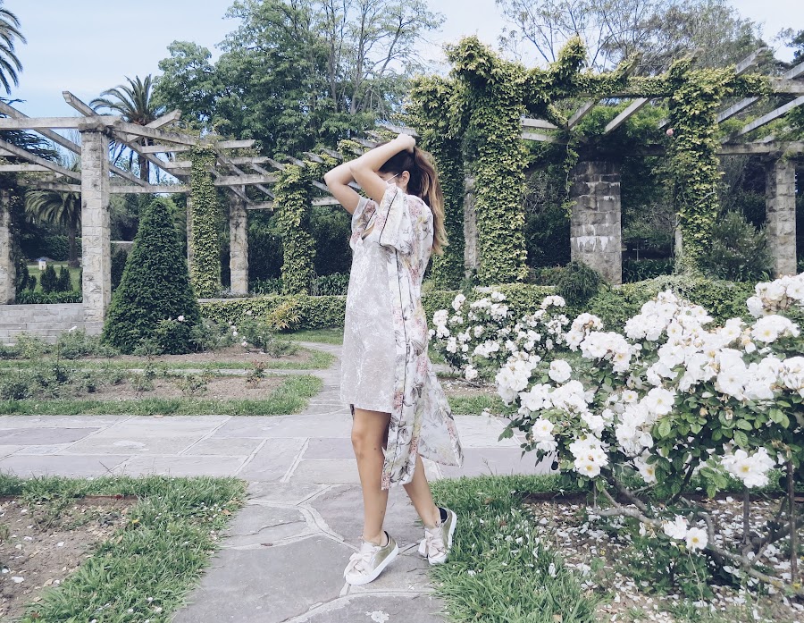 I wear a champagne velvet velvet dress, which combines great with my new sneakers by LUCIA DE LA ROSA, are in toned metallic gold, are the model "DEPORTIVAS PIEL BRILLO" and best of all is that they are super comfortable, ideal for the summer, I customize with these tapes Velvet making these jaws that makes them unique.