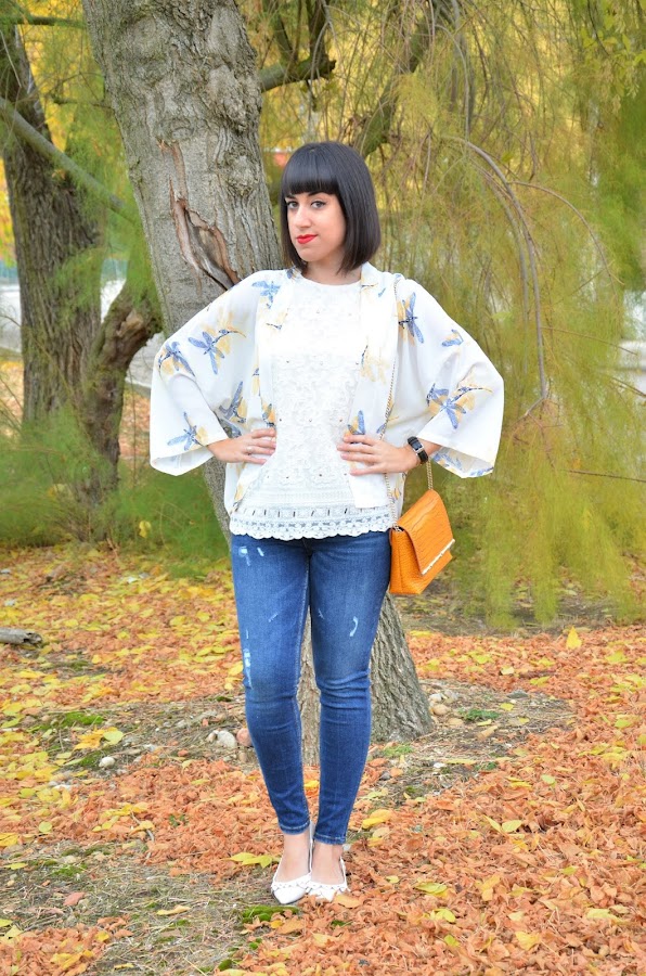 Tenía pendiente de enseñaros alguna que otra prenda de entretiempo así que hoy he aprovechado para enseñaros este kimono con estampado de libélulas de la tienda online Shein.