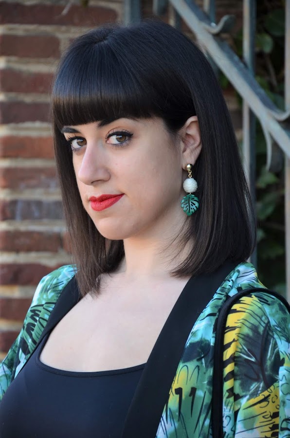 A conjunto con el kimono, también os quería enseñar los pendientes con motivos de hojas de Rosegal, que son tendencia esta temporada, ¿no me digáis que no son una cucada?