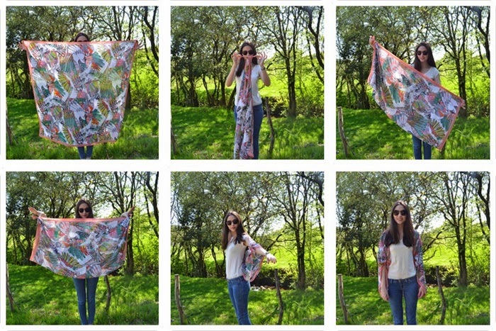Os dejo con el "paso a paso" de como convertir un fular en un kimono improvisado: