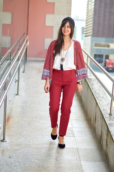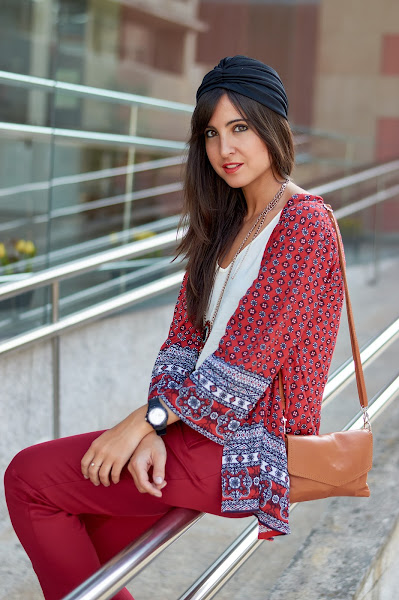 Bolso: Bolsoland/ Pantalón: Mango/ Turbante: Stradivarius / Zapatos: Asos / Kimono y collar: NewLook/ Camisa: H&M