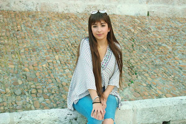 Siguiendo con el outfit en sí, a pesar de su simplicidad siempre menos es más y cada una de las prendas tienen personalidad. Las gafas de sol son de un colaboración con la tienda Gamiss, el kimono me encanta y me parece muy original, y los pantalones de rotos y flequitos son un experimento con bastante buen resultado en unos vaqueros normales y lisos. Eso es todo espero que os guste.