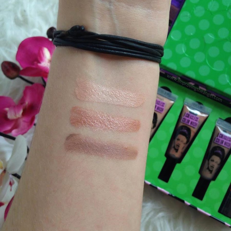 Está compuesto por tres sombras en crema, de 5ml cada una, y de la mini talla de la famosísima máscara de pestañas "theyre Real!" (3gr).