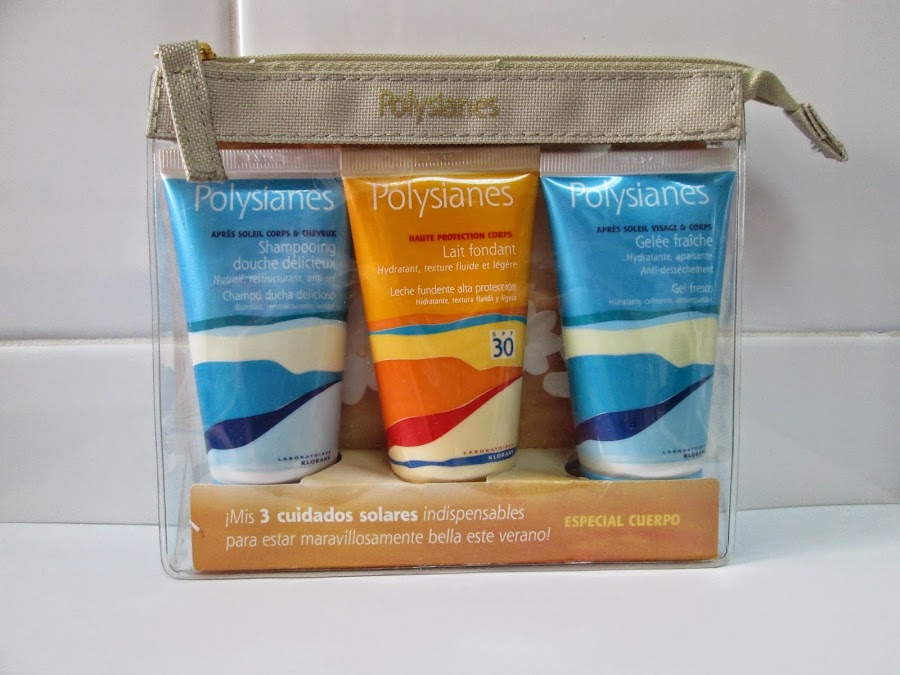 Y, bueno, el kit que vengo a presentaros de "Polysianes" (Klorane), la verdad es que está muy bien. Es un kit muy completo, ya que consta de un champú, un gel fresco y una leche con SPF 30.