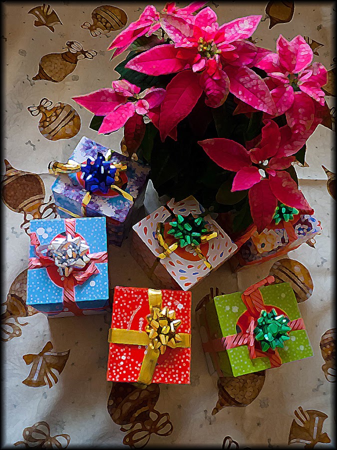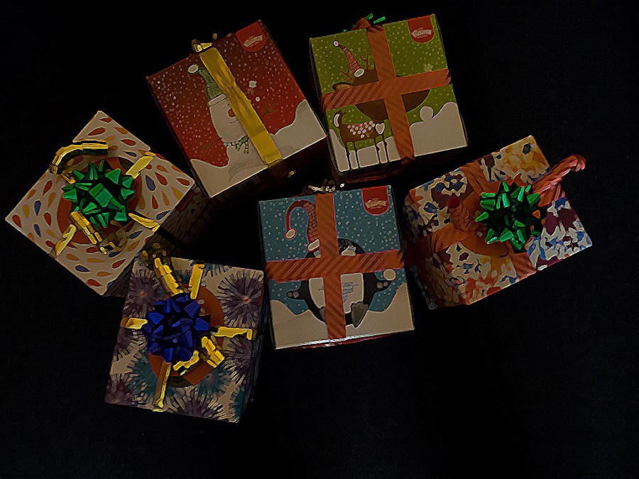 Como en otras ocasiones tenemos en marcha un fotoconcurso. Primero he puesto todas las cajas como si fueran un regalo y las he decorado con un lazo.