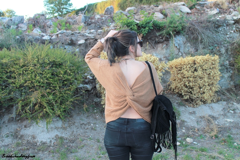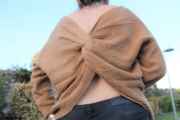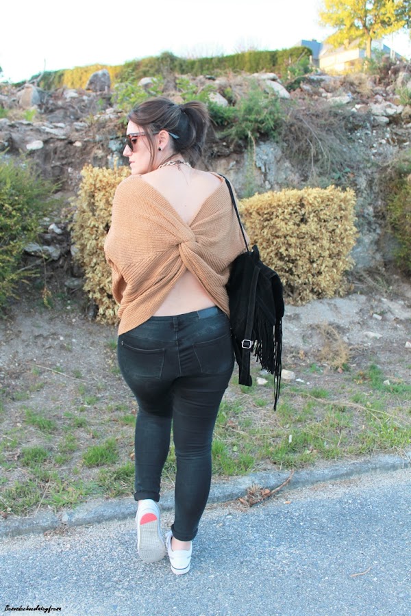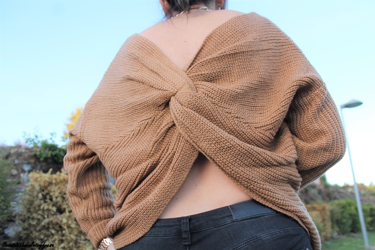 Aprovechando el fresco que tuvimos el fin de semana y que me había llegado el viernes este sweater de la web Rosegal, decidí crear un outfit sencillo ya que el protagonista totalmente en este caso está en la espalda por su detalle de nudo entrelanzándolo (también podemos ponerlo al revés, con el nudo hacia adelante) lo que hace más especial al sweater.
