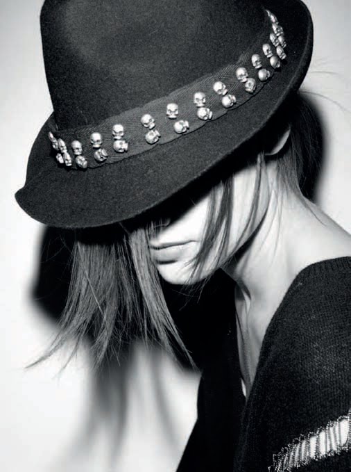 La firma especializada en el punto desde sus comienzos, aboga por el lujo accesible, marcando el acento CHIC-ROCK con prendas en piel y detalles HEAVY en forma de calaveras.