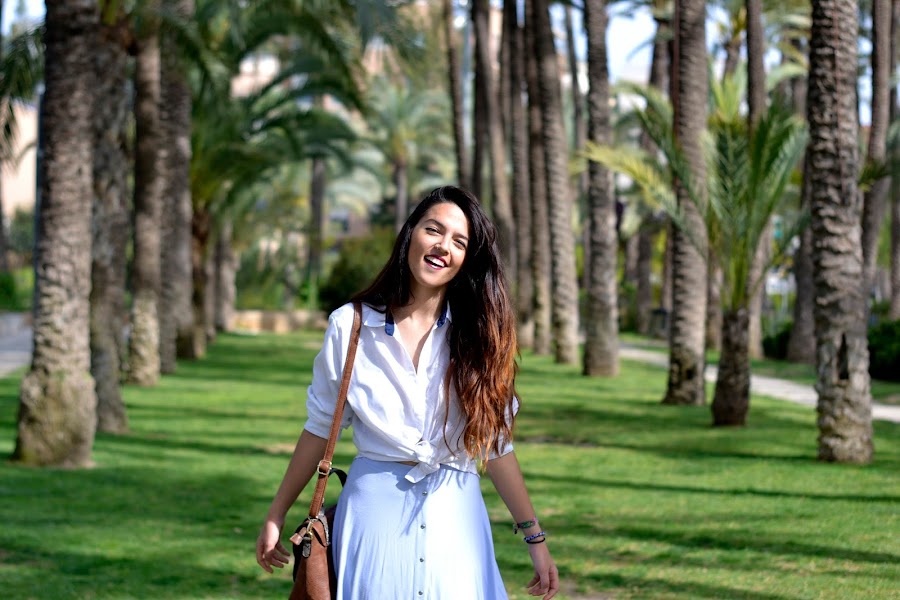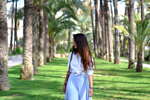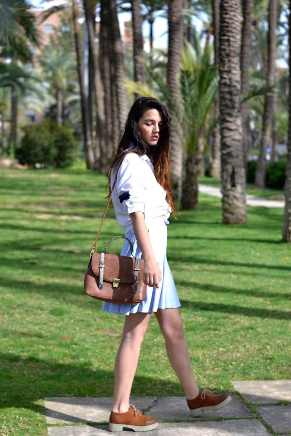 Aprovechando que se acerca ya el buen tiempo en Alicante, yo ya casi lo considero verano, he decidido sacar a la calle esta preciosa falda que me compré en las famosas rebajas de Asos y fue un gran chollazo. Como en invierno parece que no me gusta mucho sacar los tonos pastel a lucir a la calle aquí tenéis la propuesta con este azul pastel tan bonito. Una combinación con camisa blanca blanca complementando con bolso y zapatos marrones. ¿Qué os parece?