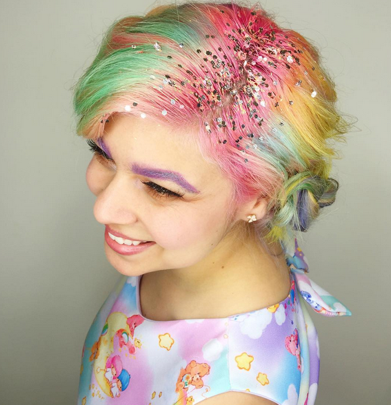 Entenderéis por qué "me pegó al ojo". Su pelo multicolor, el arcoiris reflejado en su rostro y el estilo más bien propio de un unicornio.