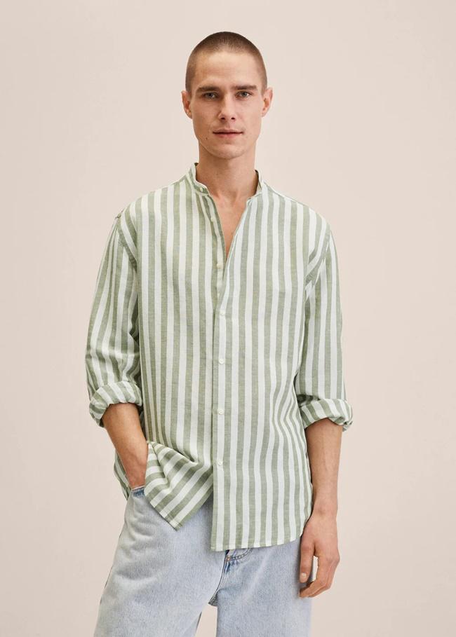 Ligero y cómodo, el lino siempre es un ganador. Esta camisa de rayas en pistacho y blanco quedaría perfecta con unos shorts blancos en una tarde de verano. Su precio es de 39.99€.